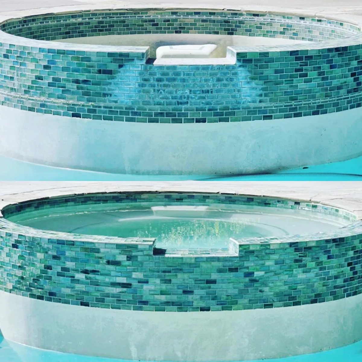 BEFORE & AFTER PICTURES OF OUR POOL TILE CLEANING